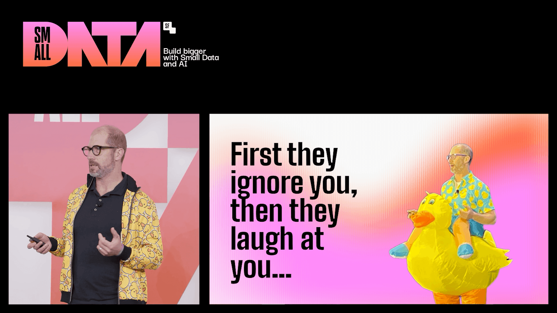 There's something surreal about sitting in the audience watching your co-founder give a talk that touches on the very conversations that led to starting a company together. As Jordan took the stage at our second Small Data SF conference, I found myself transported back to those early discussions—the ones where we questioned everything the data industry had been telling us for years.