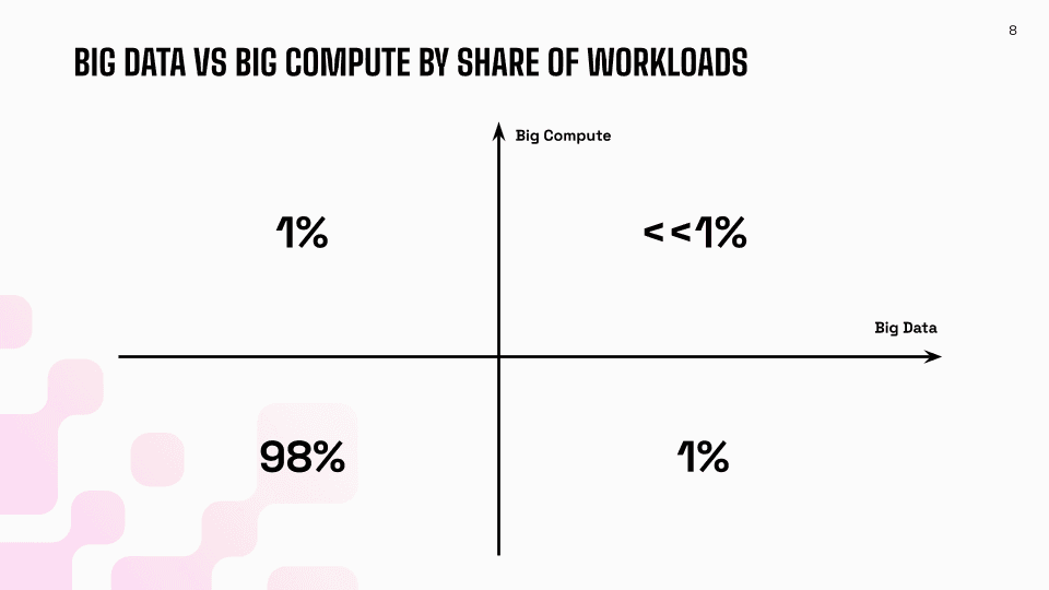 The vast majority of workloads—and I mean the vast majority—live in the small data, small compute quadrant.